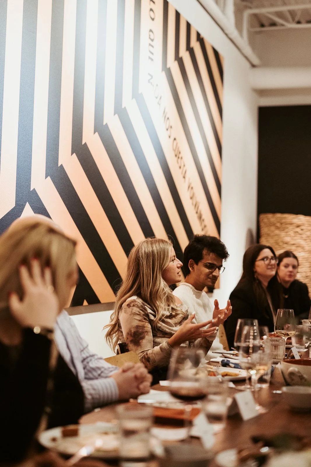 A signature, intimate dinner gathering that invites a curated guest list of entrepreneurs, creatives, and culture-makers to connect over deep dialogue. May shift toward invite-only to preserve energy, intimacy, and exclusivity. Can also be sponsored by aligned brands.