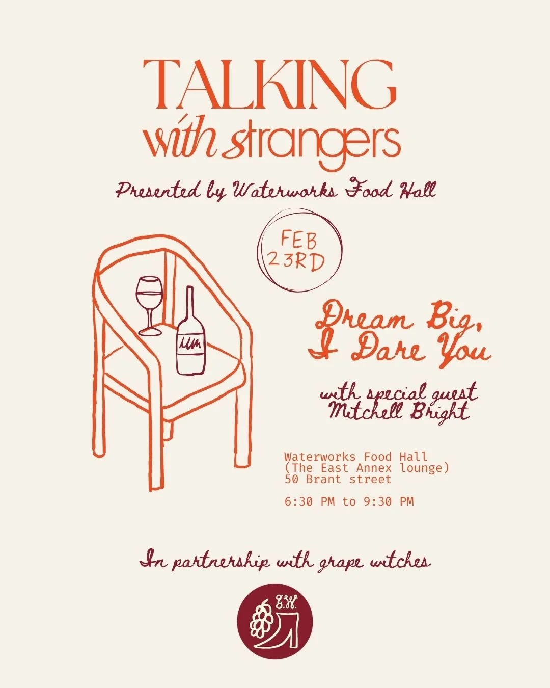 TalkingWith Strangers is a monthly series that brings together local dreamers, makers, and doers who are boldly pursuing a more connected world. We’ll highlight monthly speakers, and get the whole room connecting through breakout small group conversations.